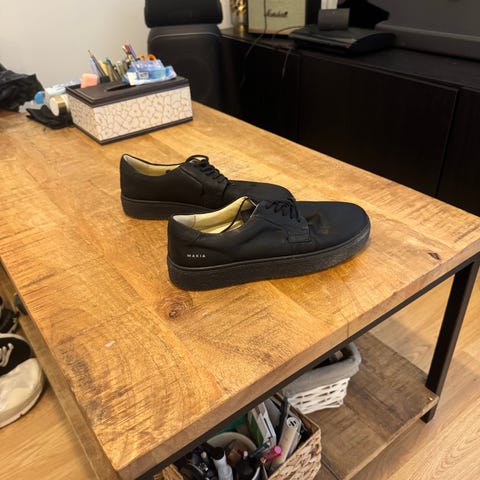 Myynnissä Makian korkkimateriaalista valmistetut kengät. Kenkien koko on miesten 40. Kengät ovat vähän pidetyt (parissa juhlissa).