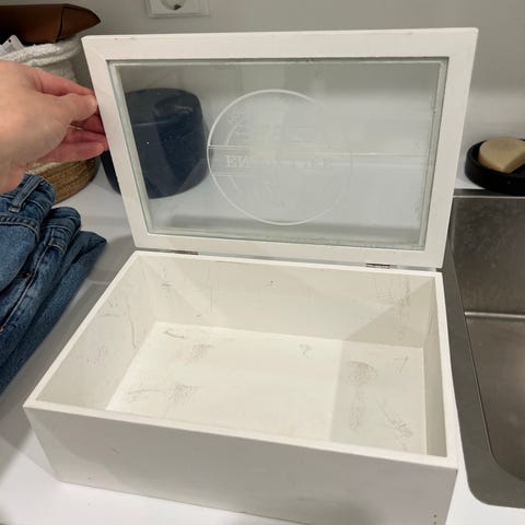 Tyylikäs musta leipälaatikko.