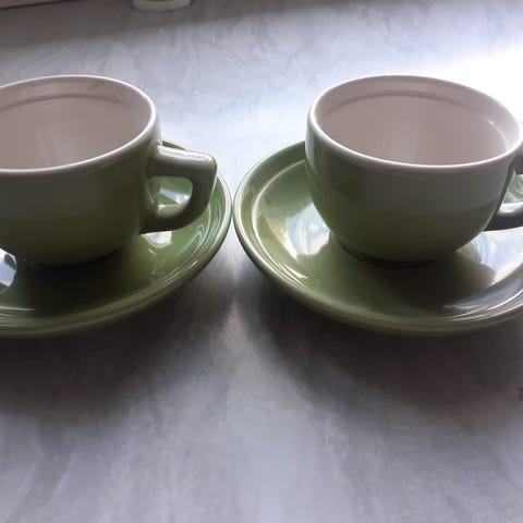 Käyttämättömät kupit tasseilla ja mukaan tunnelmaa luomaan 2kpl kynttilän jalkoja.