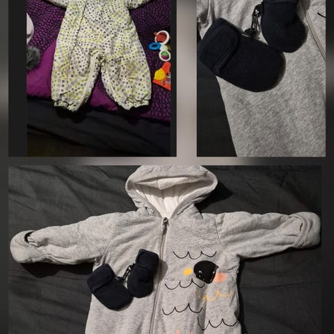 Haluan lahjoittaa Espritin pinkin velour -takin (62 cm), mekon (92 cm) ja ensitennarit tarvitsevalle.
