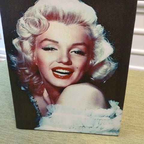 Kuvan yläosassa näkyvä varjo ja Marilynin kasvoben vieressä olevat kirkkaat juovat tulevat valokuviin valon aiheuttamista heijsatuksista.