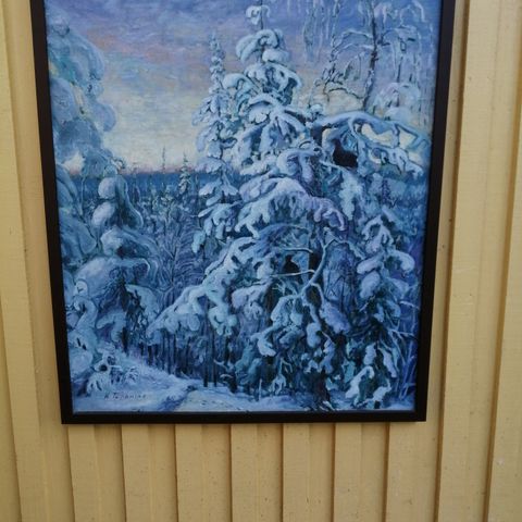 Maalaus talvimaisemasta kehystetty Aune Paulin