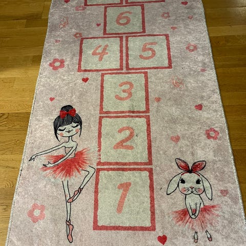 Lasten vaaleanpunainen ruutuhyppelymatto ja Ikean kukkavalaisin