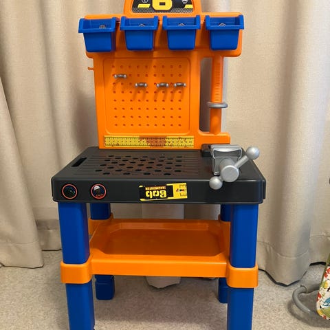 Annetaan lasten työkalupöytä ja työkaluja. Osa työkaluista puuttuu. Nouto Jäminkipohjasta tai arkipäivinä keskustasta.
