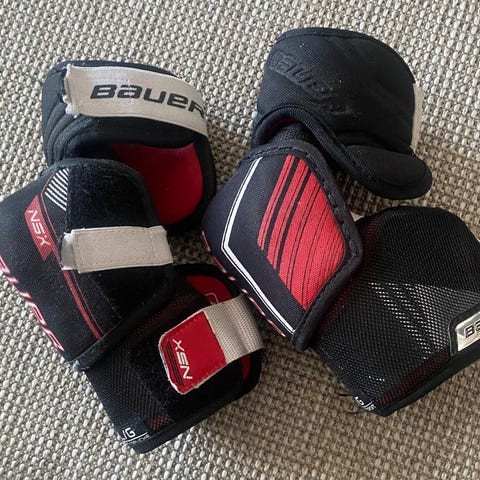 Bauer S18 kyynärsuojat, käytetty kunto, n.100-120cm kokoiselle lapselle