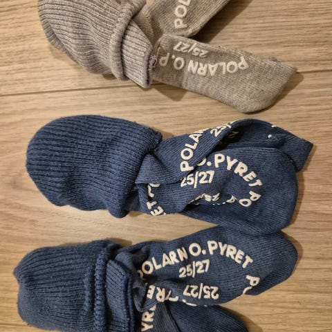 3 pairs Polarn O. Pyret socks. Soft organic cotton. Size 25-27. Bought new and used by one child. In good condition - no holes, no stains. Clean and intact. Non-smoking household. Pick up from Kivistö / shipping with ToriDiili.