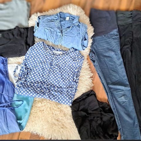 Käyttämätön äitiyspakkaus sisältää kaikenlaisia vauvan vaatteita sisä ja ulko, peitto ym ym.
