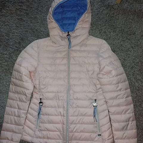 Luhta Emalkoski kevyttoppatakki. Vähän käytetty, siistissä kunnossa. Koko lapussa 40, mutta mielestäni pienehköä kokoa, vastaa enemmän kokoa 38. Väri tummansininen.