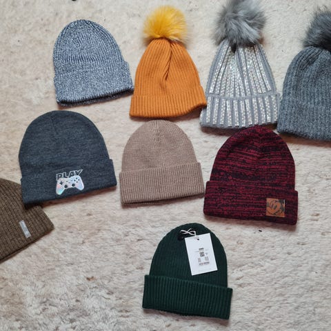 2 pipoa, musta susipipo ja uusi harmaa lippapipo.