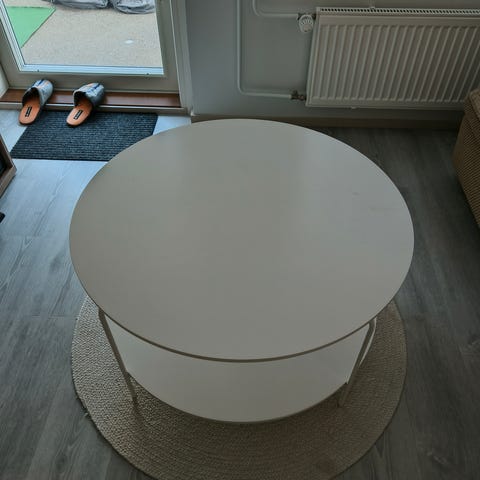 Hyvässä kunnossa oleva marmorikuvioinen sohvapöytä pois uuden tieltä.