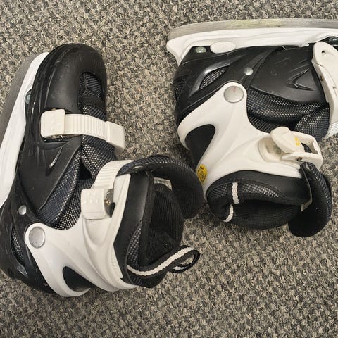 Säädettävä koko 27-30. Nauhakiinnityksen lisäksi tarranauha sekä kiinni napsautettava lukitus sivussa.