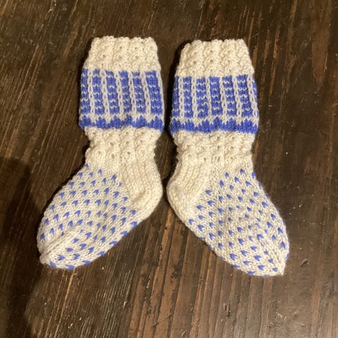 Lankana Novitan Viola, 80% villaa/20% polyamidia. Pohjan mitta 9cm eli vastaa noin kokoa 16/18 (0-6kk) villasukan venyvyyden ansiosta.