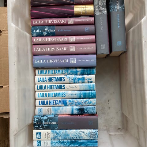 Laila Hirvisaari/Hietamies kirjasarja (13kirjaa) sisältää useita teoksia eri aiheista. Kirjat ovat suomenkielisiä ja kovakantisina. Sarja soveltuu lukijoille, jotka ovat kiinnostuneita suomalaisesta kirjallisuudesta ja historiasta.myydään pakettina 15e