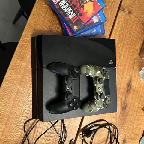 Sony PlayStation 4 pelikonsoli, mukana kaksi ohjainta, (yksi musta, yksi camo-kuvioitu),HDMI johto,käynnistysjohto ja neljä peliä. Pelit sisältävät FIFA 21,DiRT 3, Rocket League ja rayman legendsin. Molemmissa ohjaimissa jonkin verran stickdriftiä pleikkarissa ei mitään vikaa on ollut käytössä useamman vuoden