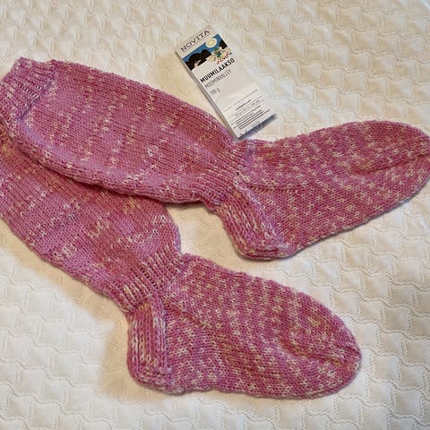 Kauniit käsinneulotut villasukat omaksi tai lahjaksi. Vahvistetut kantapää ja kärki. Sopivat mainiosti päivittäiseen käyttöön. Vain yksi pari saatavilla. Lankana Novita Muumitalo (75% villa, 25% polyamidi). Konepesu 40°C.