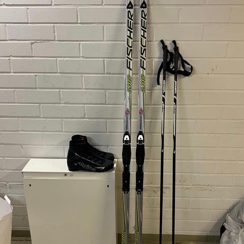Suksipaketti 195 cm perinteiseen murtomaahiihtoon.