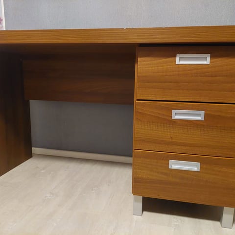 Ikean osista kasattu. Laatikosto on irrallinen eli voi käyttää ilman sitäkin, pöytälevyssä ei ole kiinnitysreikiä sille.