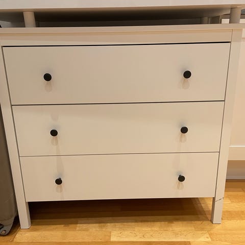 Lipasto on ostettu Ikeasta muutama vuosi sitten. Toisessa reunassa takana on pieni osuma edellisestä muutosta, muuten hyvässä kunnossa.