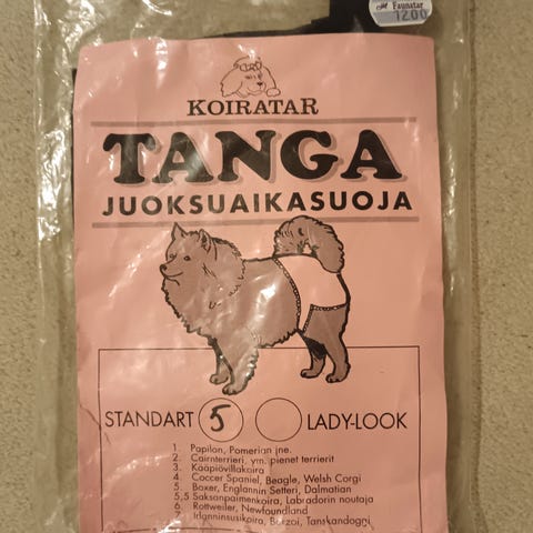 Farkkukankaiset Koiratar-juoksuhousut, joissa takataskut:) Koko 5, paketin mukaan sopii mm dalmatiailaiselle ja bokserille. Käyttämättömät!