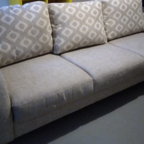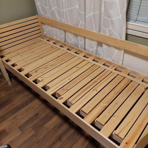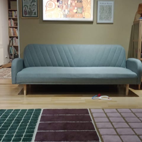 Levitettä beige kankainen vuodesohva, pedin leveys 120 cm, pituus 190 cm. Siisti, taloudessa ei kotieläimiä.