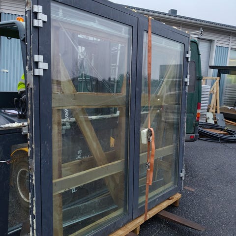 Alumiini lasiovi. Ulko-ovi 1050x2470. Ovipumppu.(Suojakansi tallessa) Melko virheetön, kuvassa vaan hyvin pölyinen/likainen.