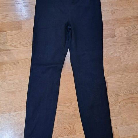 Tumman siniset housut, ohut puuvilla, vyötärö llä kuminauha, kangas hieman ratkennut kuminauhan kohdalta.