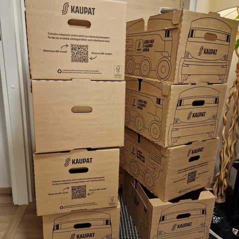 Annetaan 9 kpl IKEAN muuttolatikkoa.