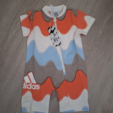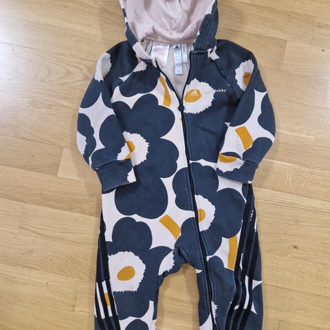 Myydään adidaksen ja marimekon yhteistyössä tekemä jumpsuit. Käytetty kahdella lapsella. Kunto hyvä. Hiukan haalistunut pesuissa, ei pahasti.