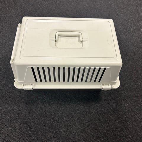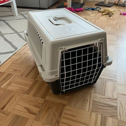 Kissan tai pienen koiran Ferplast Atlas 10 kantoboksi sinisellä pohjalla ja valkoisella kannella ja metallisella ovella. Koko: 48 x 32,5 x 29 cm (pituus x leveys x korkeus). Pientä purujälkeä ja kulumaa, josta kuvat.