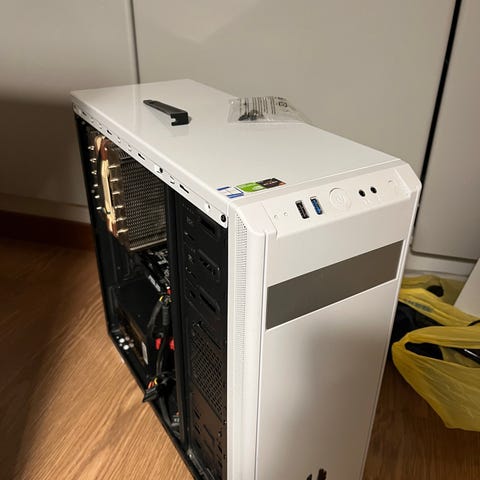 Kotelo: Zalman GS1000 SE (virtalähteen kotelon takalevy puuttuu) (mitat: 22 cm x 57 cm x 61 cm, paino 24 kg)