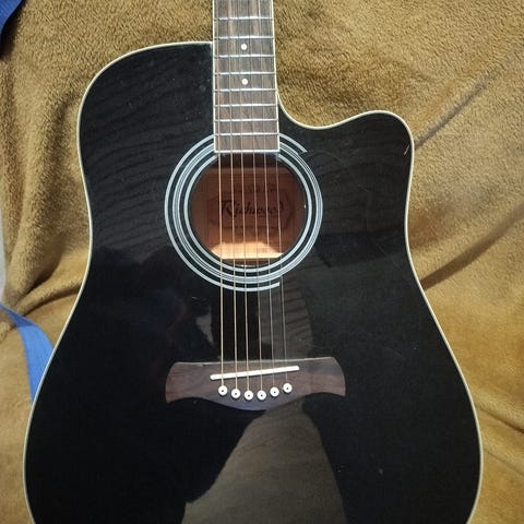 Harley Benton elektroakustinen kitara mustassa värissä. Puoliakustinen ja elektroakustinen malli, jossa on sisäänrakennettu elektroniikka. Sopii erilaisiin soitto- ja äänentoistotarkoituksiin.