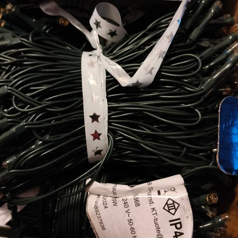 Kokonaispituus 8,4 metriä, johdon pituus 4 metriä. Otettu paketista pois ja odottanut että saisi käyttöä, mutta näitä ei saanutkaan nätisti meidän lasitetulle parvekkeelle laitettua.