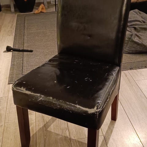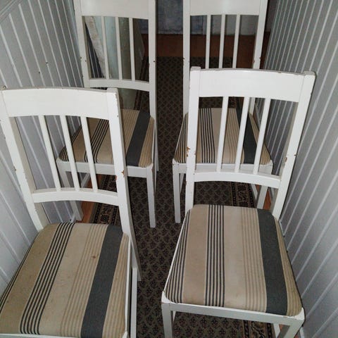 Annetaan 4kpl kuvan mukaisia tuoleja. Pääliosat kuluneet
