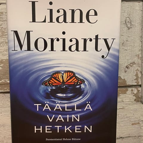 Liane Moriarty Täällä Vain Hetken, kovakantinen kerran luettu kirja.