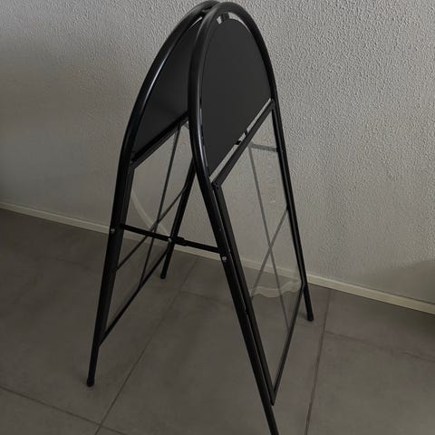 Laadukas esittely kyltti, jossa on sininen kehys ja nuoli. Kyltti on kaksipuolinen ja sen runko on alumiinia. Se on näppärän kevyt käsitellä ja sen kannake on erittäin kestävää muovia. Käytetyt materiaalit ovat kaikki ruostumattomia. Sopii käytettäväksi opastukseen tai esittelytilaisuuksiin tai esimerkiksi kiinteistönvälityksen esittelytilaisuuksiin.
