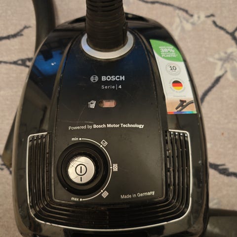 Bosch Serie 4 pölynimuri musta väri. Sisältää imuletkun ja neljä erilaista suutinta.