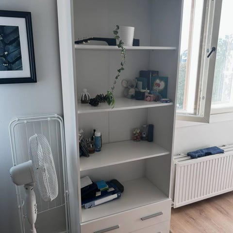Myydään käytännöllinen valkoinen säilytyshylly. Hyllyssä on kuusi avointa lokeroa sekä kolme vetolaatikkoa alhaalla. Sopii hyvin esimerkiksi lastenhuoneeseen, eteiseen, toimistoon tai varastointiin.
