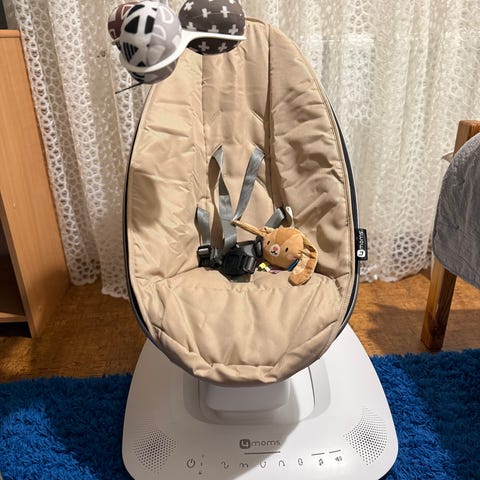 Keinuva sitteri lelukaarella vauvalle. Keinuu edestakaisin keinun omaisesti. Toimii verkkovirralla. Nopeudessa viisi eri nopeutta. Kaikin puolin ehjä ja siisti sitteri.