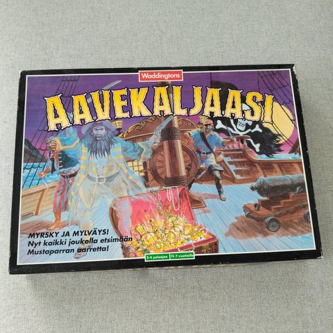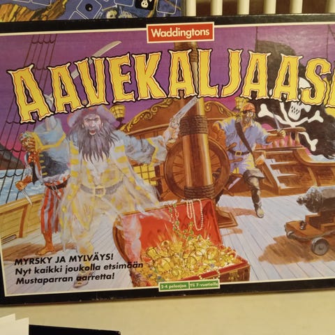 Myyn vanhan Aavekaljaasi lautapelin. Peli on tarkistettu ja muuten siinä on kaikki osat tallessa, mutta laivan perästä pieni merirosvolippu puuttuu (ei haittaa pelaamista mitenkään). Laatikossa iän tuomaa kulumaa ja sitä on nurkista teipillä vahvistettu.