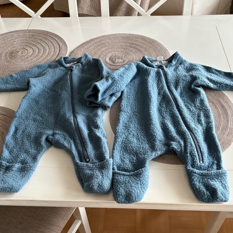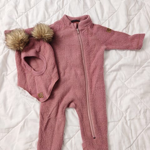 Ihanan pehmeä ja paksu, todella lämmin. Pinnassa materiaalille tyypillistä haitua, mutta ollut myös alunperinkin pörröinen. Ehjä ja tahraton. Voi ottaa käyttöön jo koossa 62.