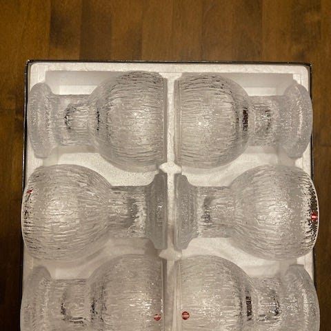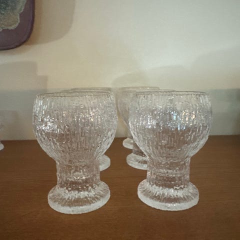 Timo Sarpanevan Kekkerit sarjan Moukku valkoviinilasit. 4kpl. 11cm korkea, 20cl. Sopii hyvin myös vesilasiksi. Katso muut lasit myös, viimeinen valokuva.