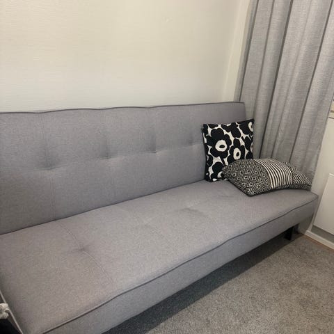 Bellona vuodesohva vaaleanharmaalla plyysikankaalla. Sohvassa on irrotettavat tyynyt ja metalliset jalat. Sopii olohuoneeseen tai muuhun oleskelutilaan. Jämäkkä mekanismi, helppo kääntää vuoteeksi ja takaisin sohvaksi. Sohvan sisällä säilytystilaa. Hyvässä kunnossa, nouto Myyrmäki/Vantaa.