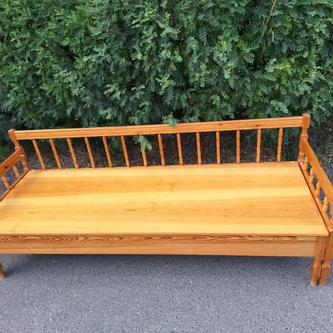 Hyväkuntoinen vanhan ajan lutikkalaatikko-mallin sohva. Kannen alla hyvä säilytystila.