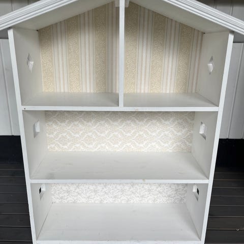 Kolmikerroksinen barbitalo. Mukana huonekaluja ja tarvikkeita. Korkeus 130cm, leveys 101cm, syvyys 30cm. Pinnoissa jonkin verran kulumajälkiä. Jäljet näkyvät kuvissa.