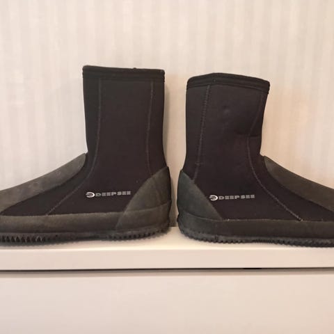 Sukelluskenkä, neooreenikenkä, koko 46/47 Kenkä on suunniteltu vedenalaisiin aktiviteetteihin ja tarjoaa suojaa ja pitoa märissä olosuhteissa. Pohja on kuvioitu parantamaan pitoa liukkailla pinnoilla.