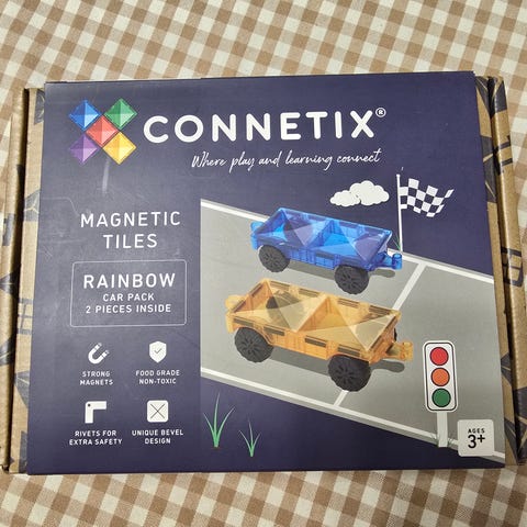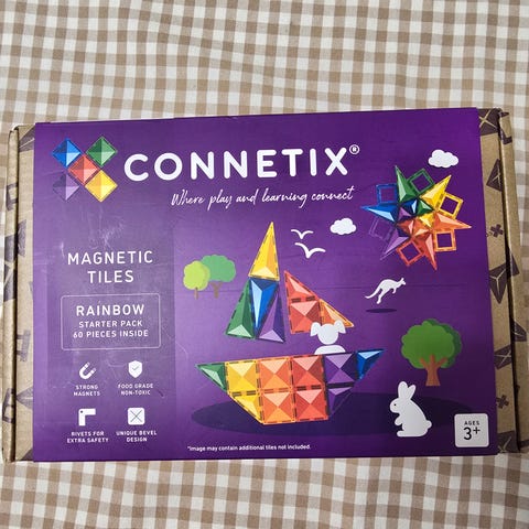 Used by one kid, has natural signs of wear which you can see in second photo. I just found 1 purple triangle that has a bit deeper scratch, but not broken (3rd photo).
