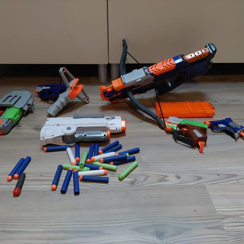 Nerf. Pituus 22cm. Hyvä kuntoinen. (väritys: sininen, oranssi, harmaa) ).