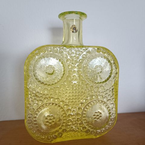 Vanha keltainen Nanny Stillin suunnittelema keltainen suosittu Grapponia pullo.