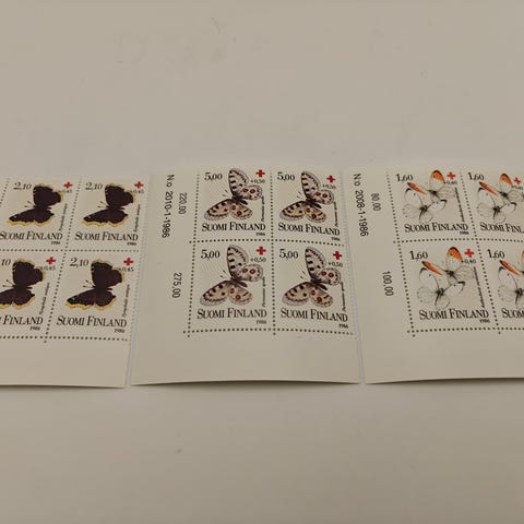 Perhonen postimerkki erä yli 250 kpl + 7 blokkia