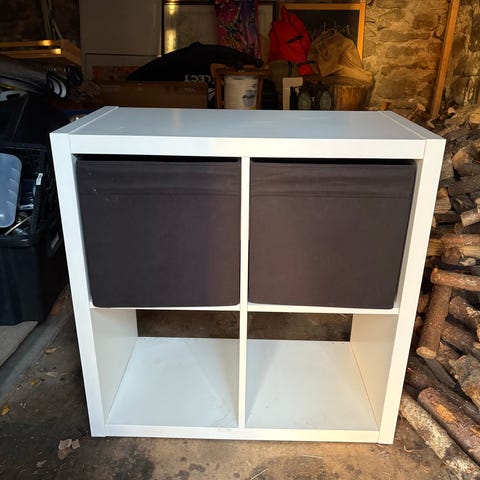 Hylly / hyllykkö. Koloihin sopii ikean kallax laatikot. Kunto hyvä jotain jälkiä on.